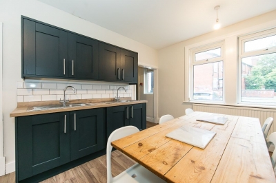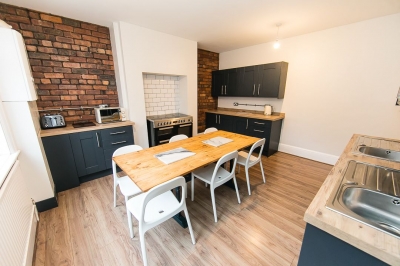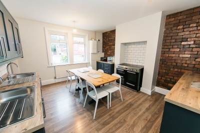 This stunning 8 x bed property situated in the heart of Headingley has recently benefitted from a kitchen refurbishment, with exposed brick walls, modern appliances and deep grey cabinetry, this room really has the wow factor. The room has a huge dining table, two sinks, two fridge freezers, a range oven, hob and microwave.